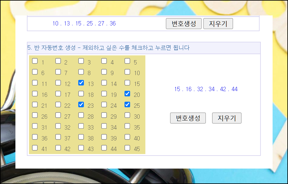 특별한 로또 번호를 피하고 싶나요? 생성기에서 제외하고 싶은 숫자들을 체크하고 버튼을 누르면 나만의 맞춤형 예상번호를 얻을 수 있어요.