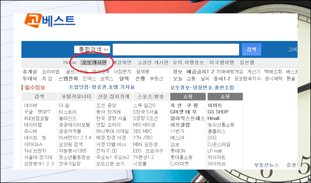 접속하면 다양한 카테고리가 눈에 들어와요. 배경화면부터 여행 정보까지 폭넓은 서비스를 제공하니까요. 예상번호가 필요하다면 통합검색 아래의 로또 게시판으로 이동하시면 됩니다.