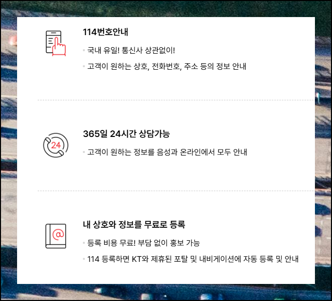 주변 업체를 쉽고 간단하게 알고 싶다면 114를 활용해보세요. 일반전화는 114, 휴대폰은 지역번호와 114를 누르면 됩니다. 이곳을 통해 콜택시 부르는법 외에도 다양한 정보를 얻을 수 있어요. 상담원에게 구체적인 위치를 알려주면 근처에 있는 업체의 연락처를 알려준답니다. 가까운 곳일수록 빠른 배차가 가능하죠.