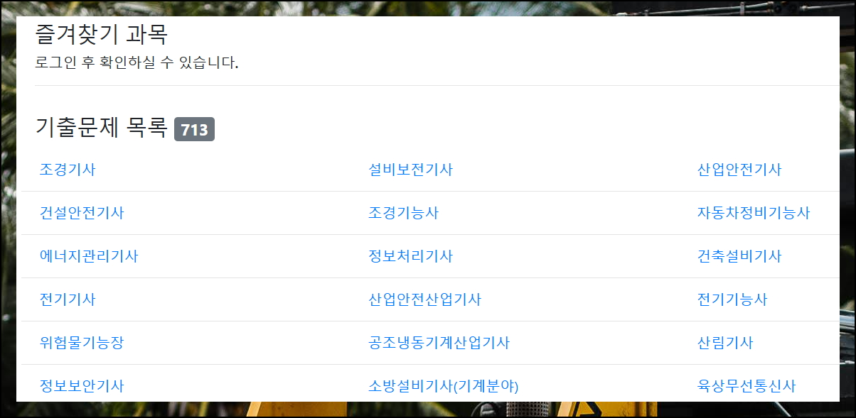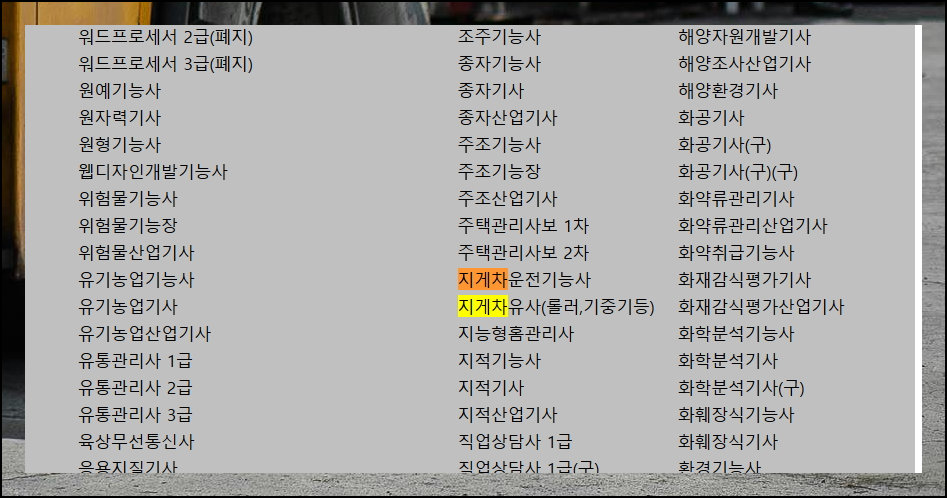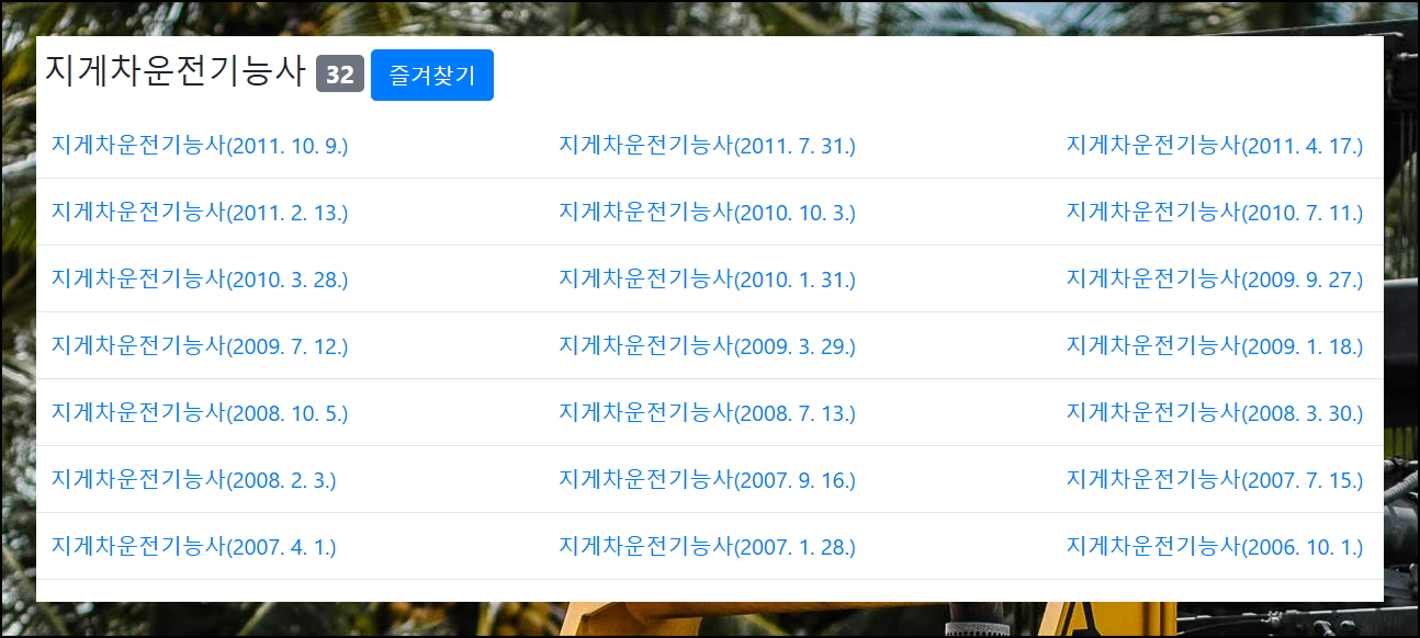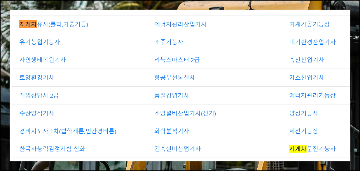 사이트에 들어가면 수많은 자격증 목록이 있어요. 지게차운전기능사 필기시험 준비를 위해 빠른 검색을 활용하면 순식간에 원하는 자격증을 찾을 수 있습니다. 이웃 자격증도 한눈에 볼 수 있죠.