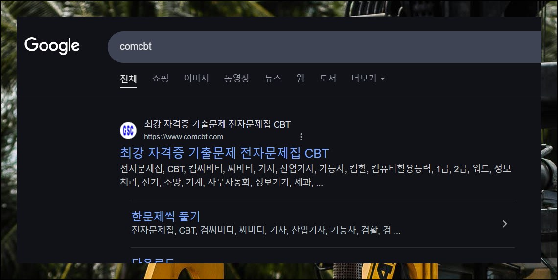 두 번째 추천 사이트에서는 문제지를 내려받을 수 있어요. 지게차운전기능사 필기시험 자료가 정답이 표시된 버전과 정답표만 있는 버전, 두 가지로 준비되어 있습니다. comcbt 검색으로 쉽게 찾아갈 수 있어요.