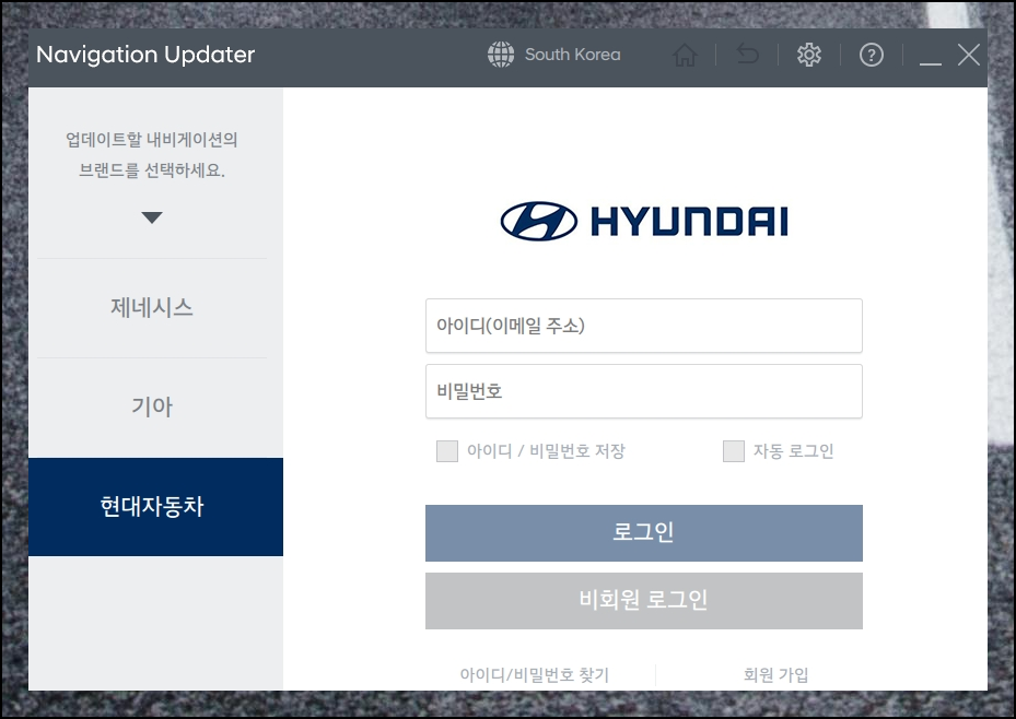 비회원이라도 현대자동차의 프로그램 사용에는 제약이 없으니 안심하세요. 별도의 로그인 정보 없이도 업데이트 준비와 진행이 가능합니다.