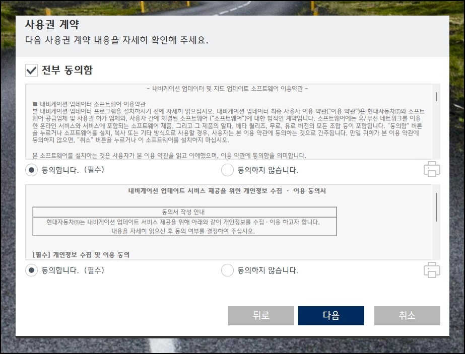 화면에 나타나는 안내를 따라가면서 다음 버튼만 눌러주세요. 현대자동차만의 편리한 프로그램 설치 과정을 경험하실 수 있습니다.