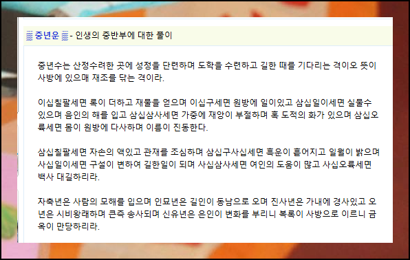 (9) 초년, 중년, 말년 운세보기