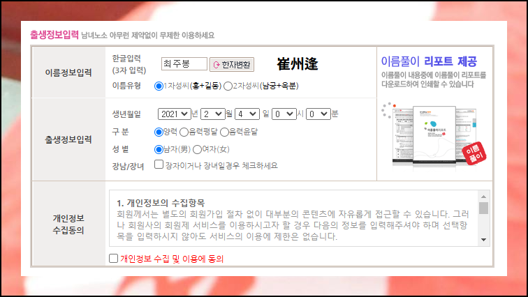 분석을 원하시는 분이라면 누구든 무료 이용을 할 수 있어요. 한자로 된 이름과 출생 정보만 있으면 바로 시작할 수 있으니 정말 간편하죠.