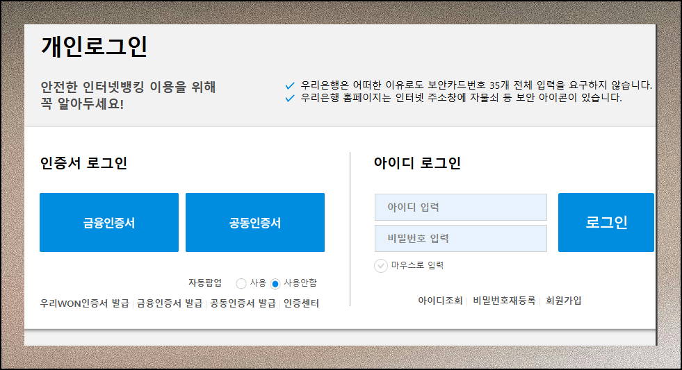 (1) 은행 사이트 접속