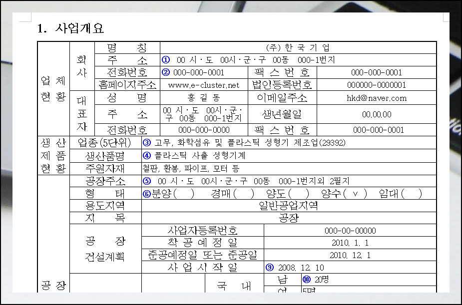 이 양식에는 산업단지 입주부터 제조업, 비제조업까지 다양한 예시가 포함되어 있어요. 업종별로 필요한 모든 항목이 정리되어 있어 초보 창업자도 쉽게 작성할 수 있답니다.