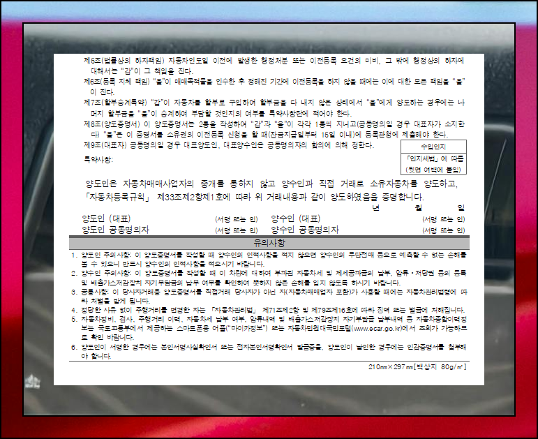 구매를 결정했다면 필요한 모든 서류를 마련하고, 이전 비용과 영수증도 확인하세요. 계약서 내용, 특히 특약사항을 주의 깊게 살펴보는 것이 중요합니다. 차량 매매시 대금 지급 방식과 인도일 등 핵심 항목은 반드시 문서화하세요. 이런 세부 내용까지 챙기면 나중에 발생할 수 있는 분쟁을 예방할 수 있습니다.