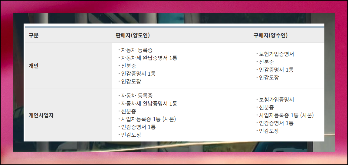 차량 매매시 필요서류 한눈에 파악하기