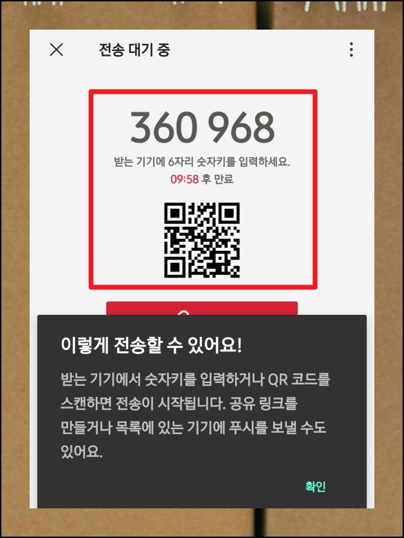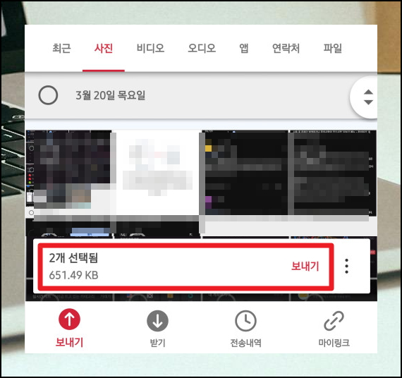핸드폰 사진을 컴퓨터로 옮기는 방법은 매우 간단해요. 전송하고 싶은 사진을 고른 후 화면 아래의 '보내기' 버튼을 누르세요. 그러면 6자리 숫자 코드가 생성됩니다. 이 코드는 모바일과 PC를 안전하게 연결하는 역할을 해요. 번호가 표시되면 기기는 그대로 두고 다음 단계로 진행하세요.