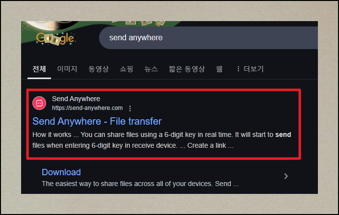 이제 노트북이나 데스크톱에서 Send Anywhere 웹사이트에 방문할 차례예요. 별도의 소프트웨어 설치 없이 웹 브라우저만으로 작업이 가능해 편리합니다. 인터넷 검색창에 'Send Anywhere'를 입력하면 공식 페이지를 쉽게 찾을 수 있어요.