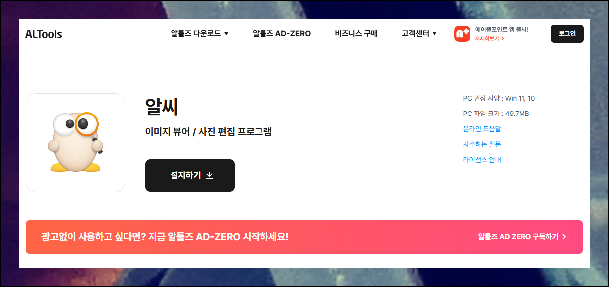 알씨는 알툴즈 공식 사이트에서 무료로 다운로드 진행을 할 수 있습니다. 누구나 부담 없이 정식 버전을 이용할 수 있어요.