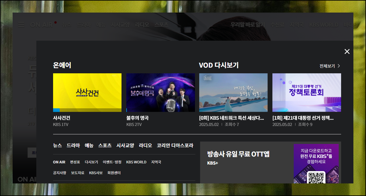 | KBS1실시간 방송보기 (여러채널 무료) (0) | 2024.06.26 |