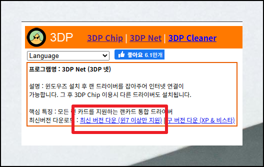 이런 상황에서는 '3dp net' 프로그램이 매우 유용해요. 이 도구는 여러분의 네트워크 카드에 맞는 드라이버를 자동으로 검색하고 설치해줍니다.