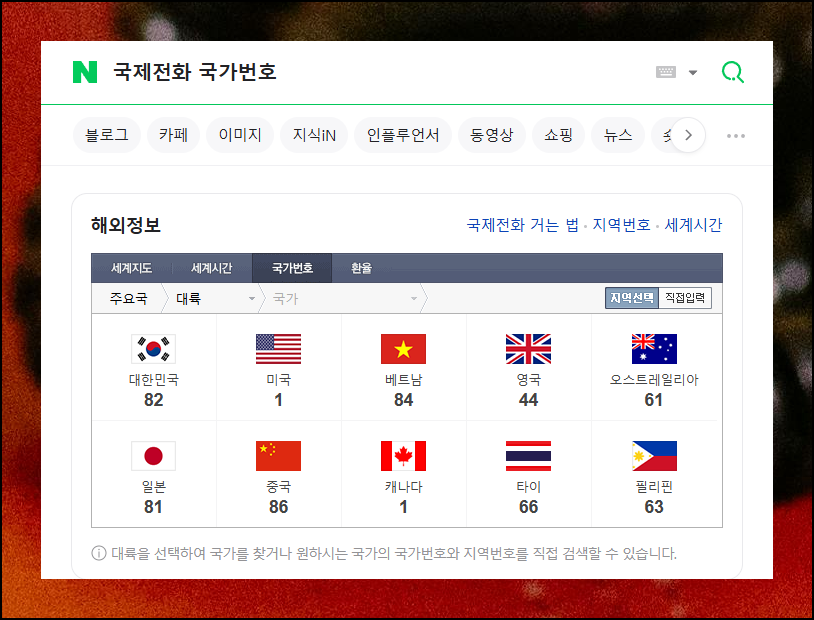 해외통화를 하려면 먼저 국가코드를 알아두세요. 네이버에서 "국제전화 국가번호"를 검색하면 쉽게 확인할 수 있어요.