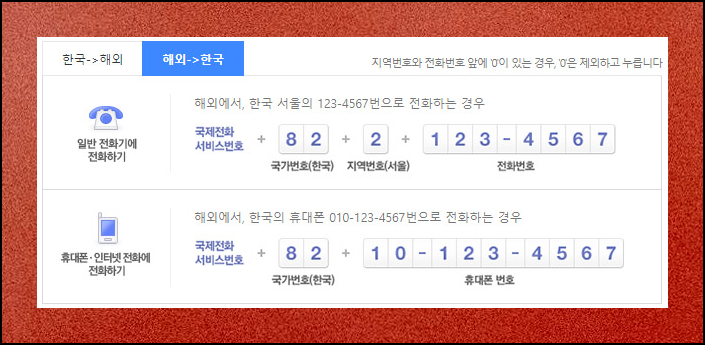 해외에서 한국으로 전화할 때도 유사한 방식을 사용해요. 한국 국가코드(82)와 지역코드를 누르면 됩니다. 이때도 서비스코드가 필수적입니다.