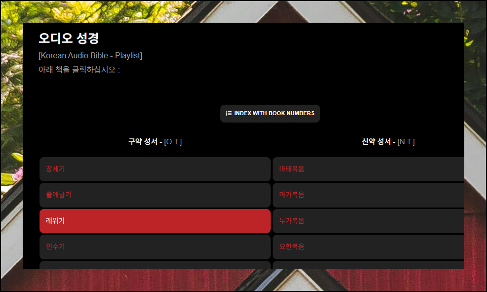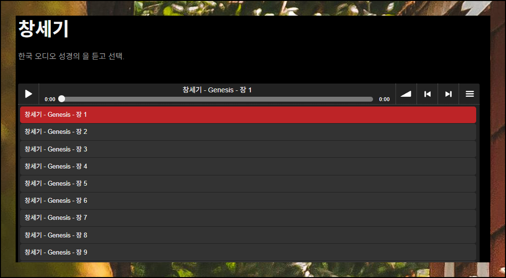 챕터를 선택했다면(예: 창세기), 플레이어에서 희망하는 장을 골라 좌측 상단의 재생 버튼을 클릭하기만 하면 됩니다.